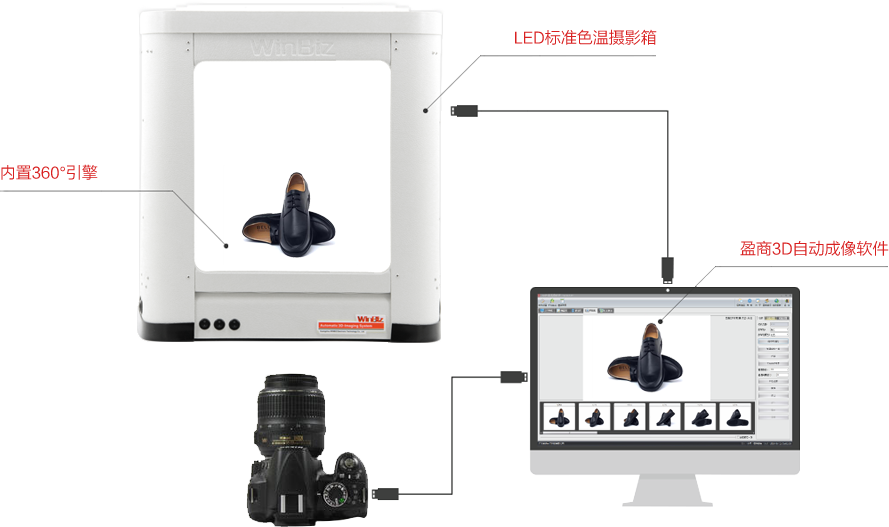 內置5500K標準色溫LED攝影燈,還原產(chǎn)品真實色彩,360 度無暗角布光讓您輕松拍攝!